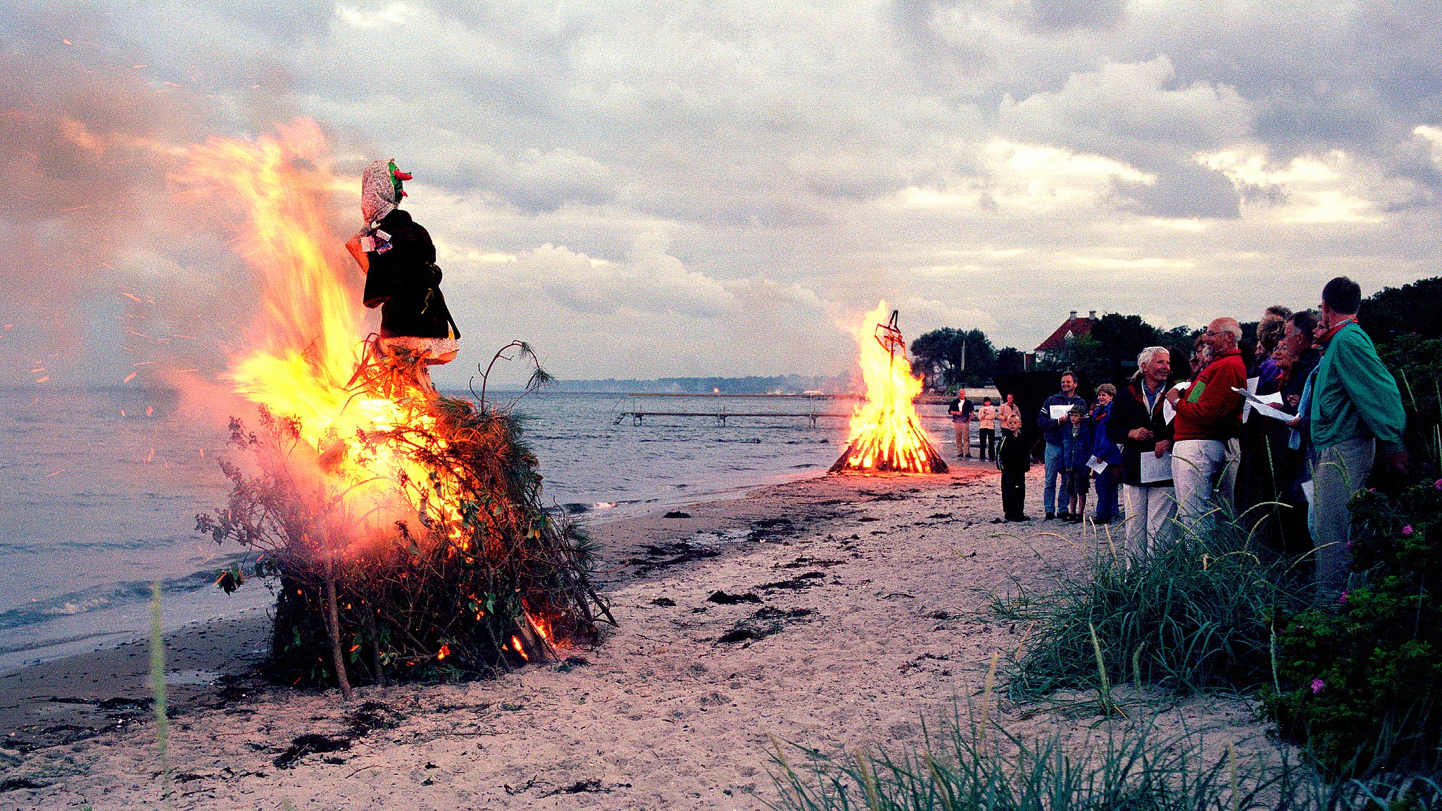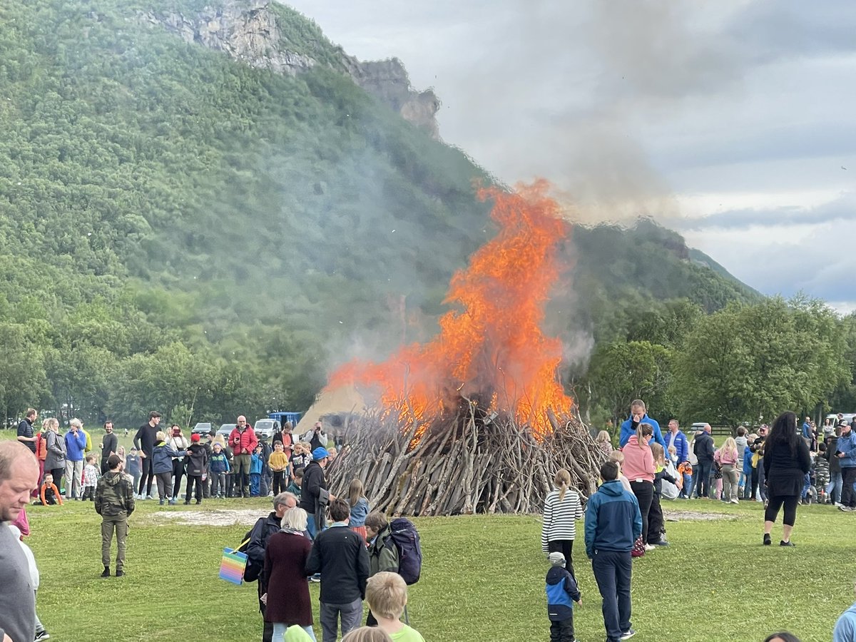 Juni, mange steder med store sankthansbål hvis været tillater det.
